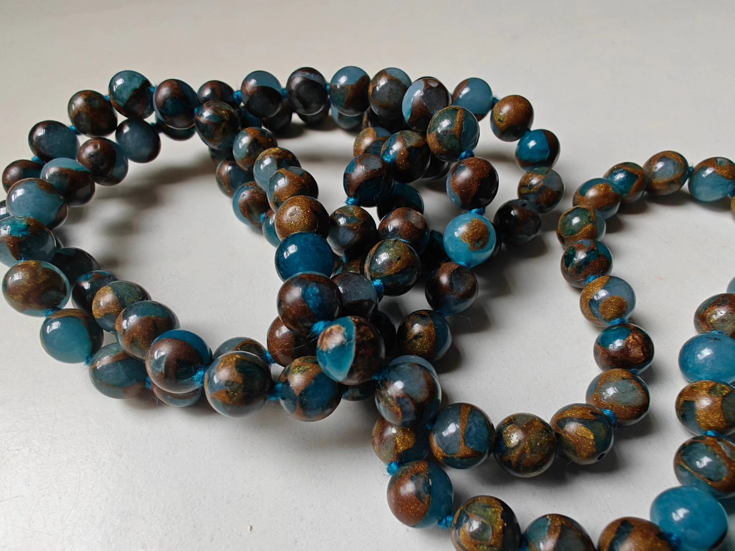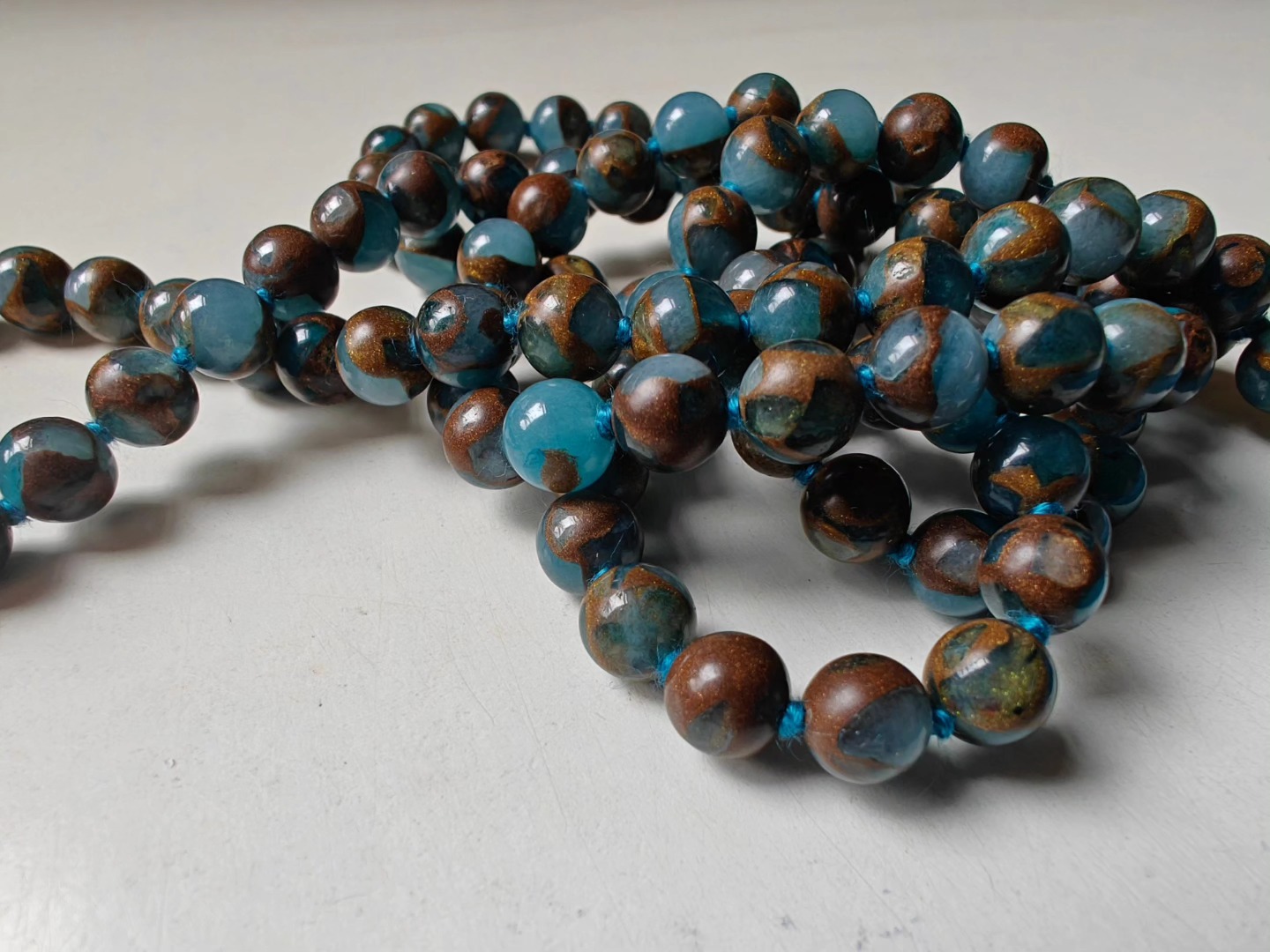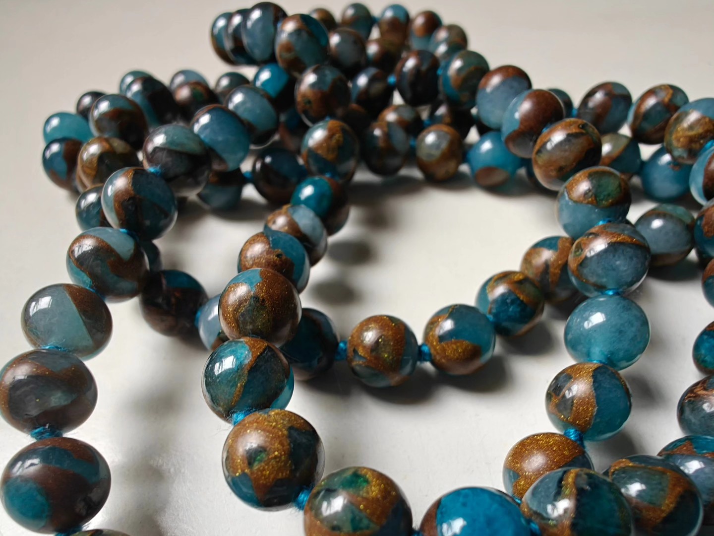 Normally I try to select only perfectly round beads without any imperfections for all of the hundreds of malas I’ve made over the years. That contributes to their price setting. But that means I’ve got thousands of imperfect beads at home.