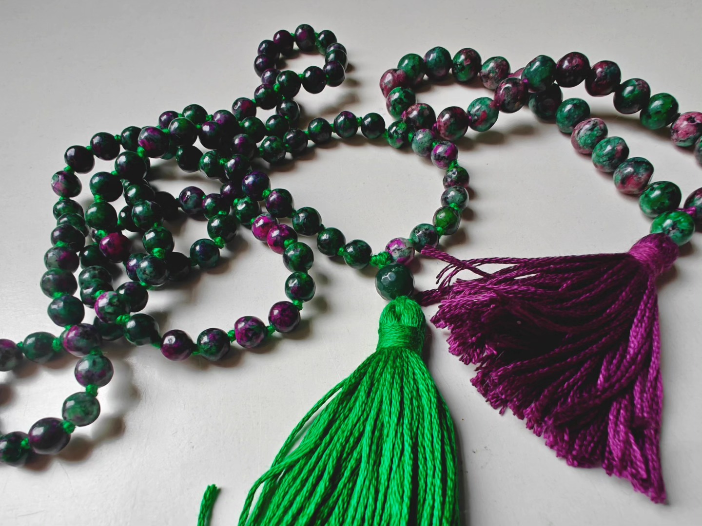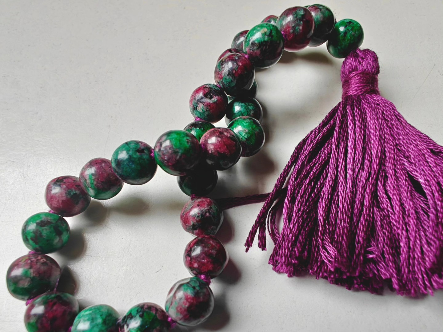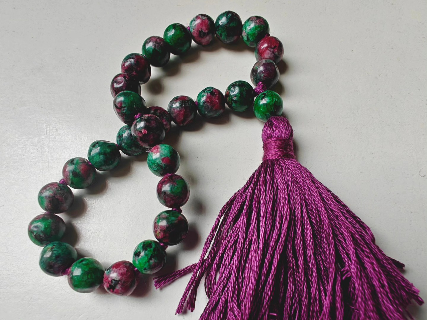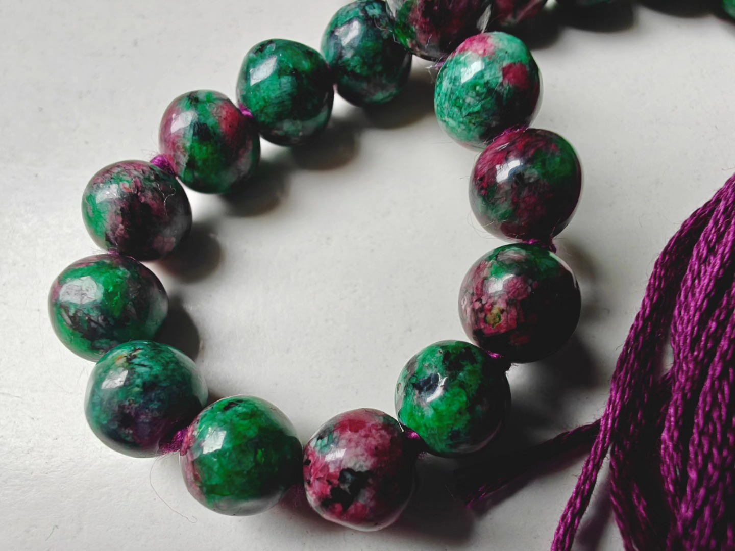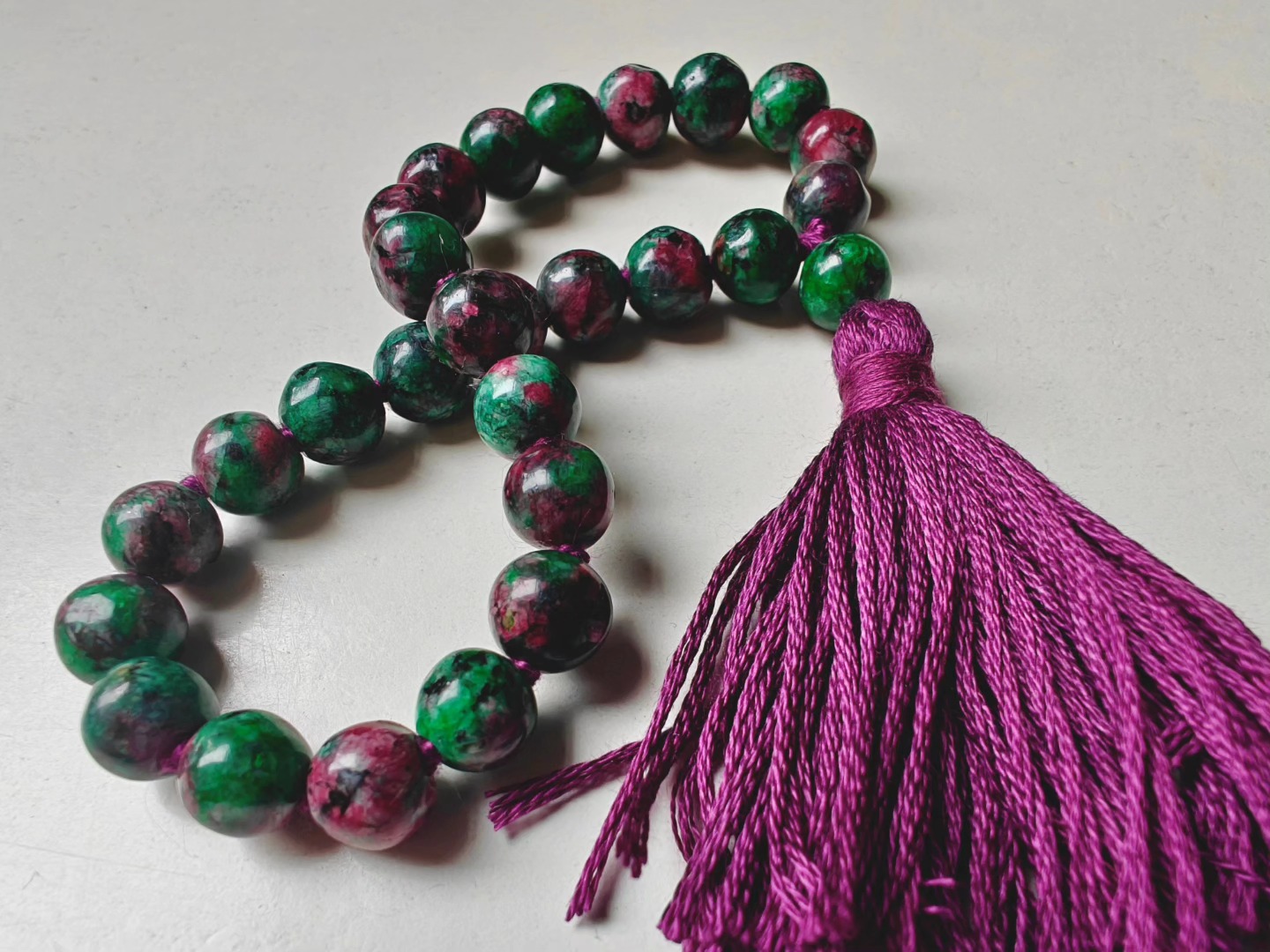 Ruby-Zoisite comes as a super wonky bead — there is little ’round’ about these beads ! That’s part of their power and charm.