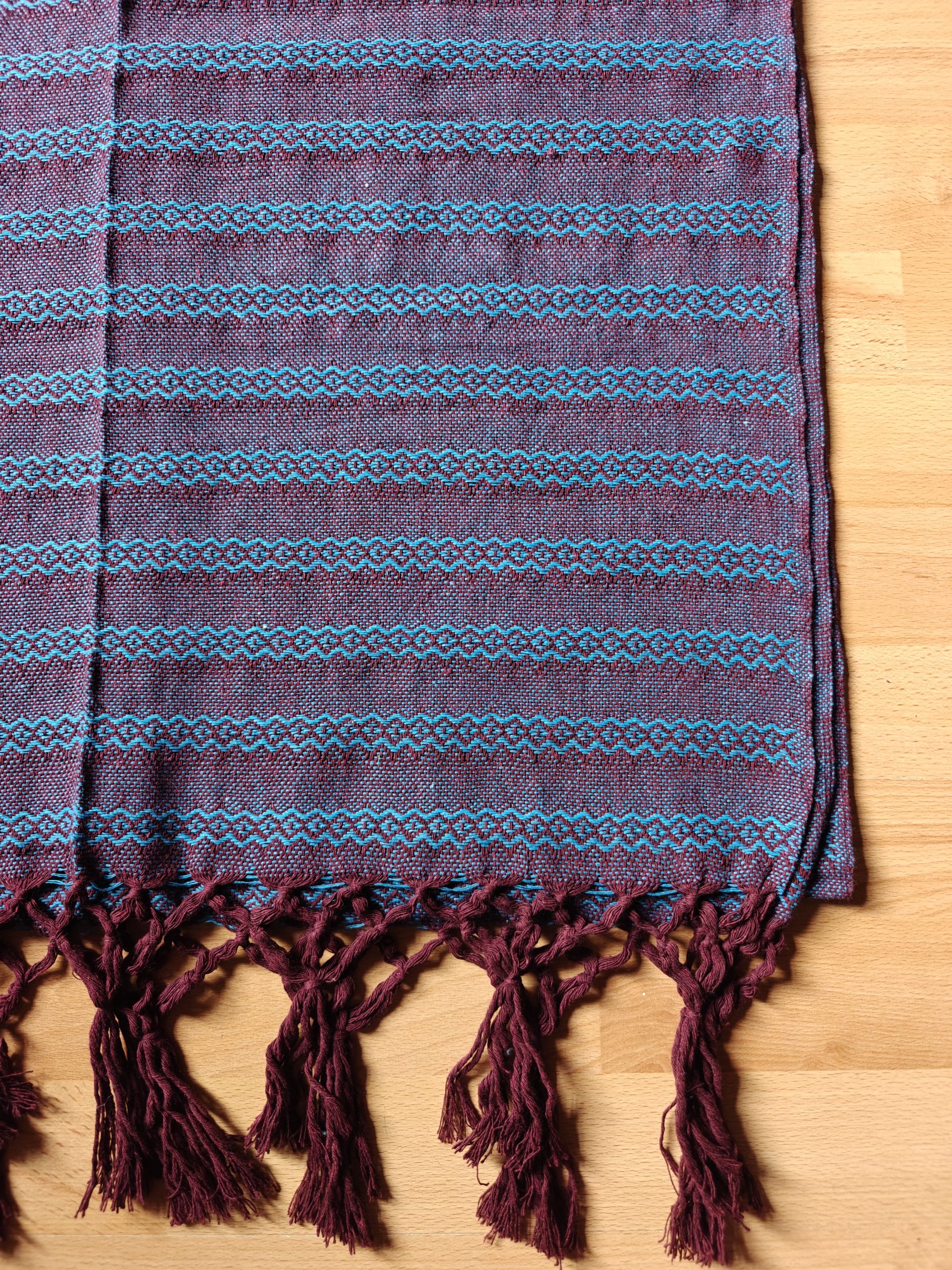 These particular rhomboid close weave rebozos are 2.5 m long (with a 15 cm fringe on either side), on a width of 65 cm. They are incredibly soft traditional Mexican rebozos that were handmade on a waist loom in San Andres Tzicuilan, a town in the north of Puebla, Mexico – the softest ones I stock.