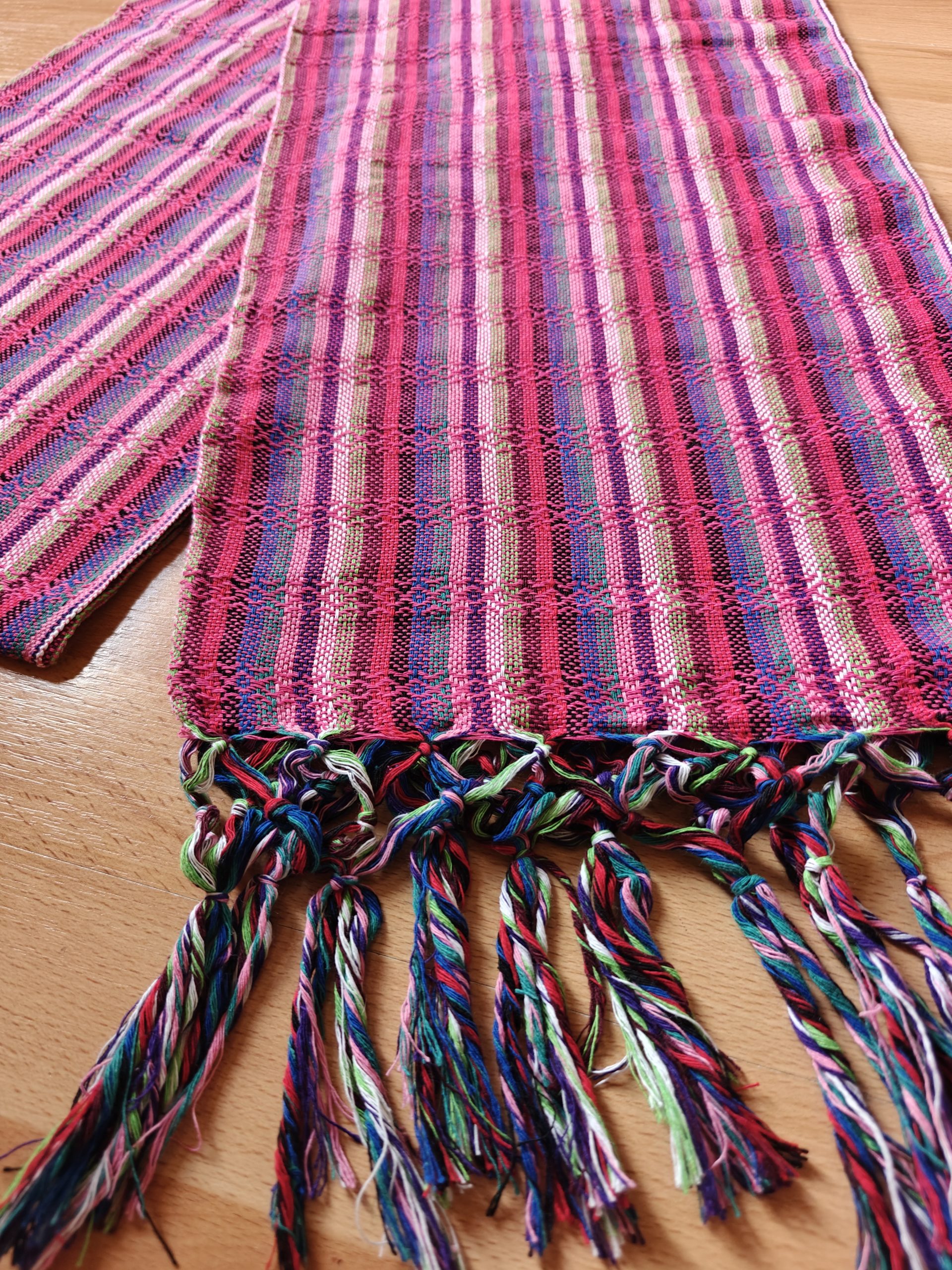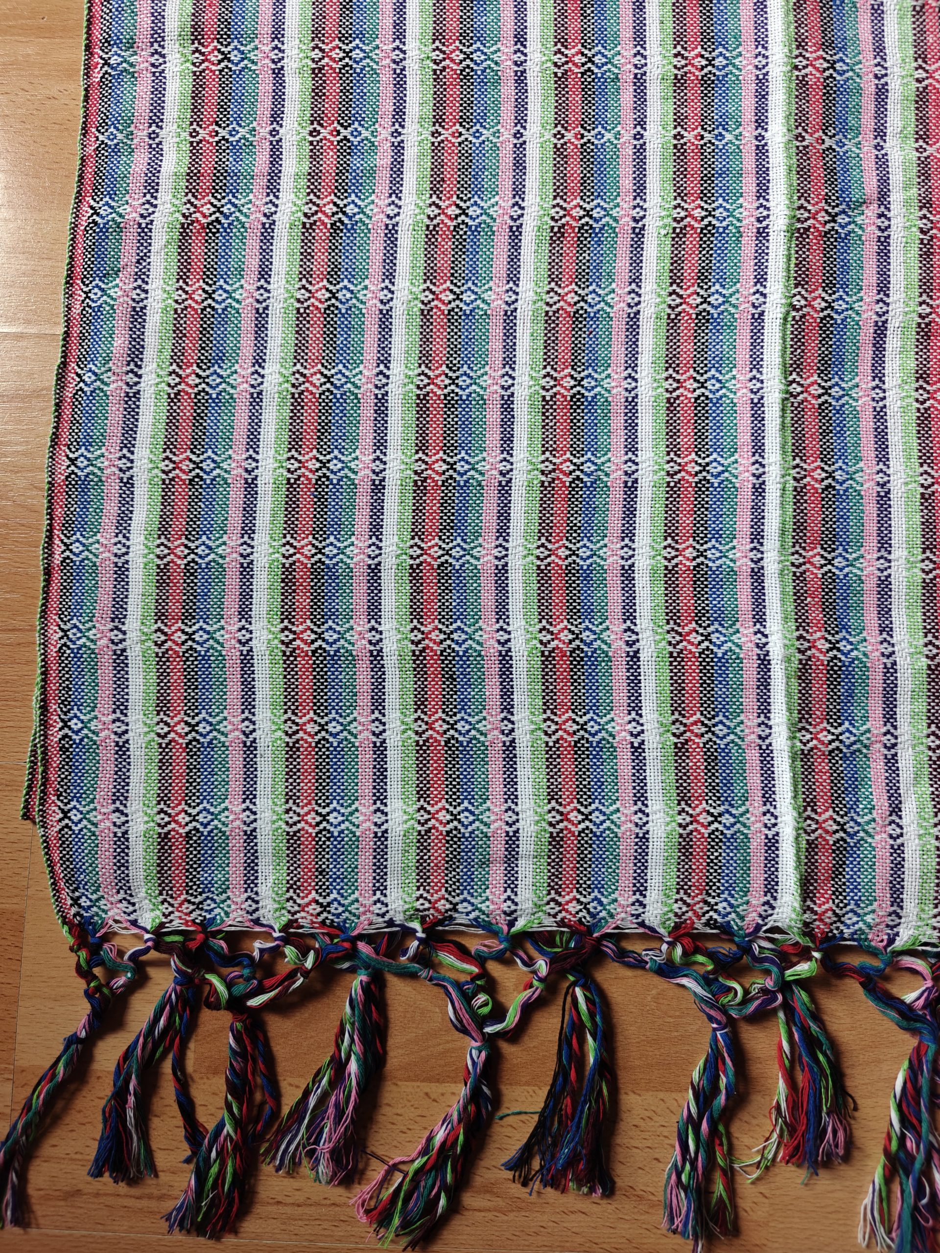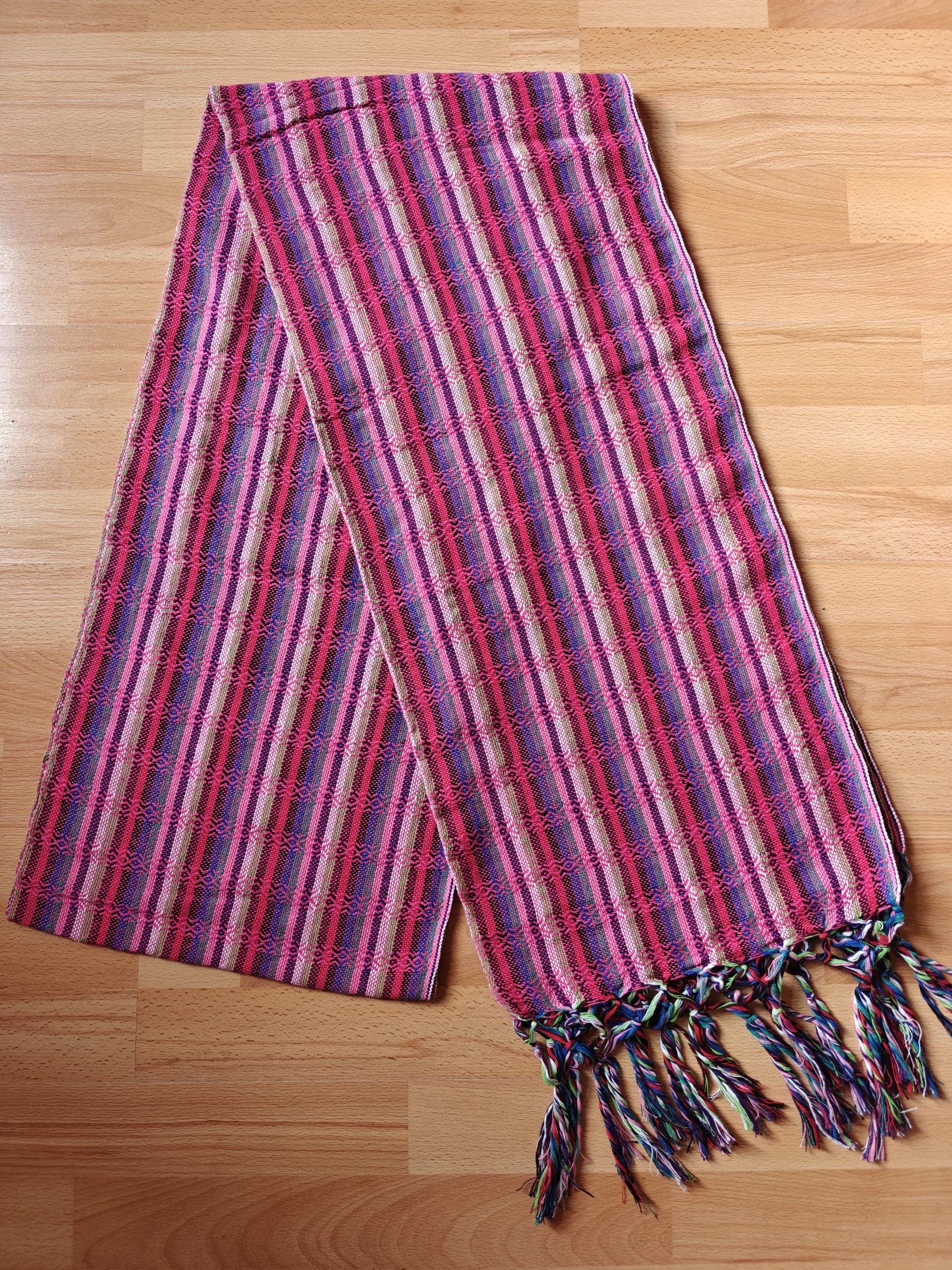 These particular rhomboid close weave rebozos are either 2.5m or 3m long (with a 15 cm fringe on either side), on a width of 65 cm. They are incredibly soft traditional Mexican rebozos that were handmade on a waist loom in San Andres Tzicuilan, a town in the north of Puebla, Mexico – the softest ones I stock.