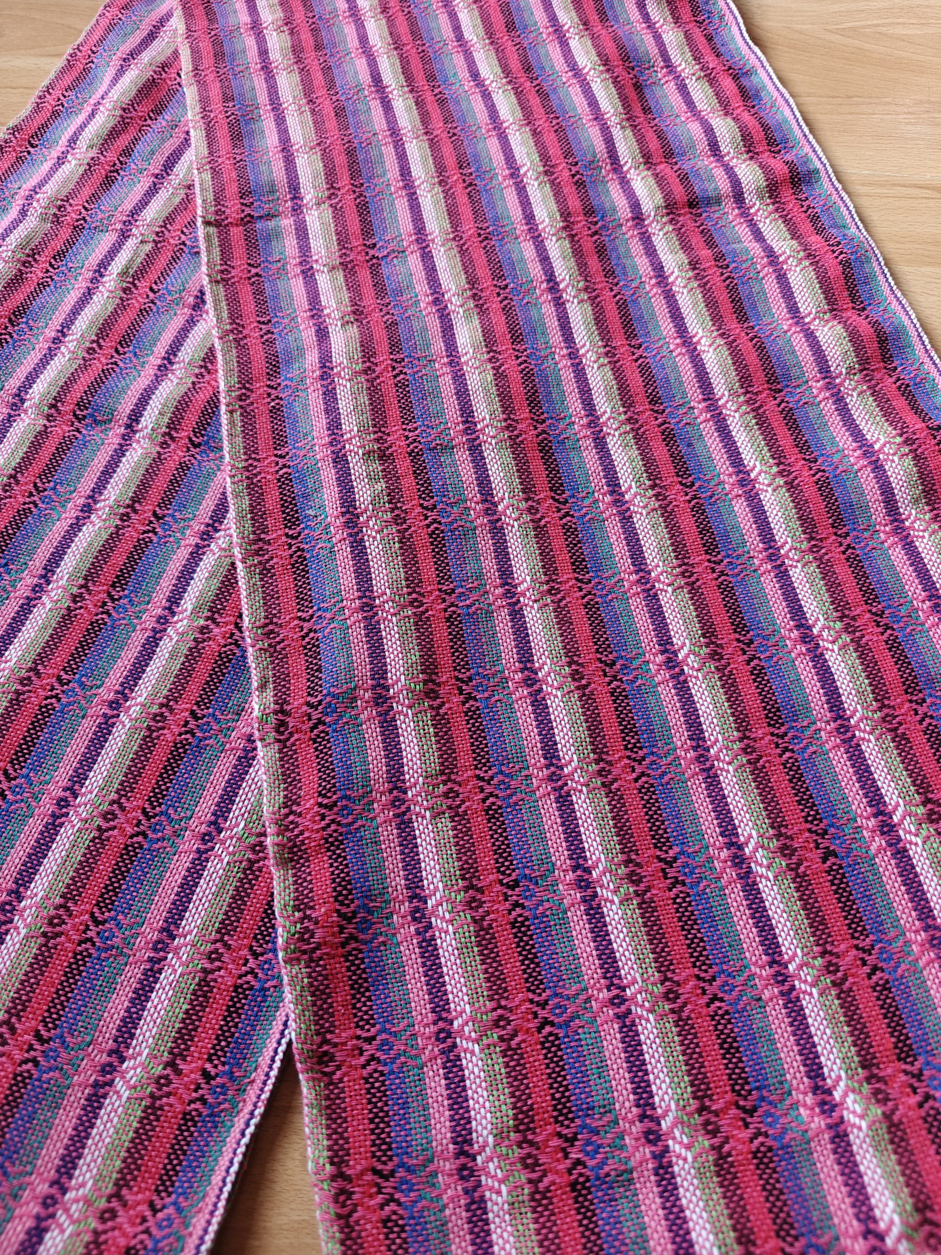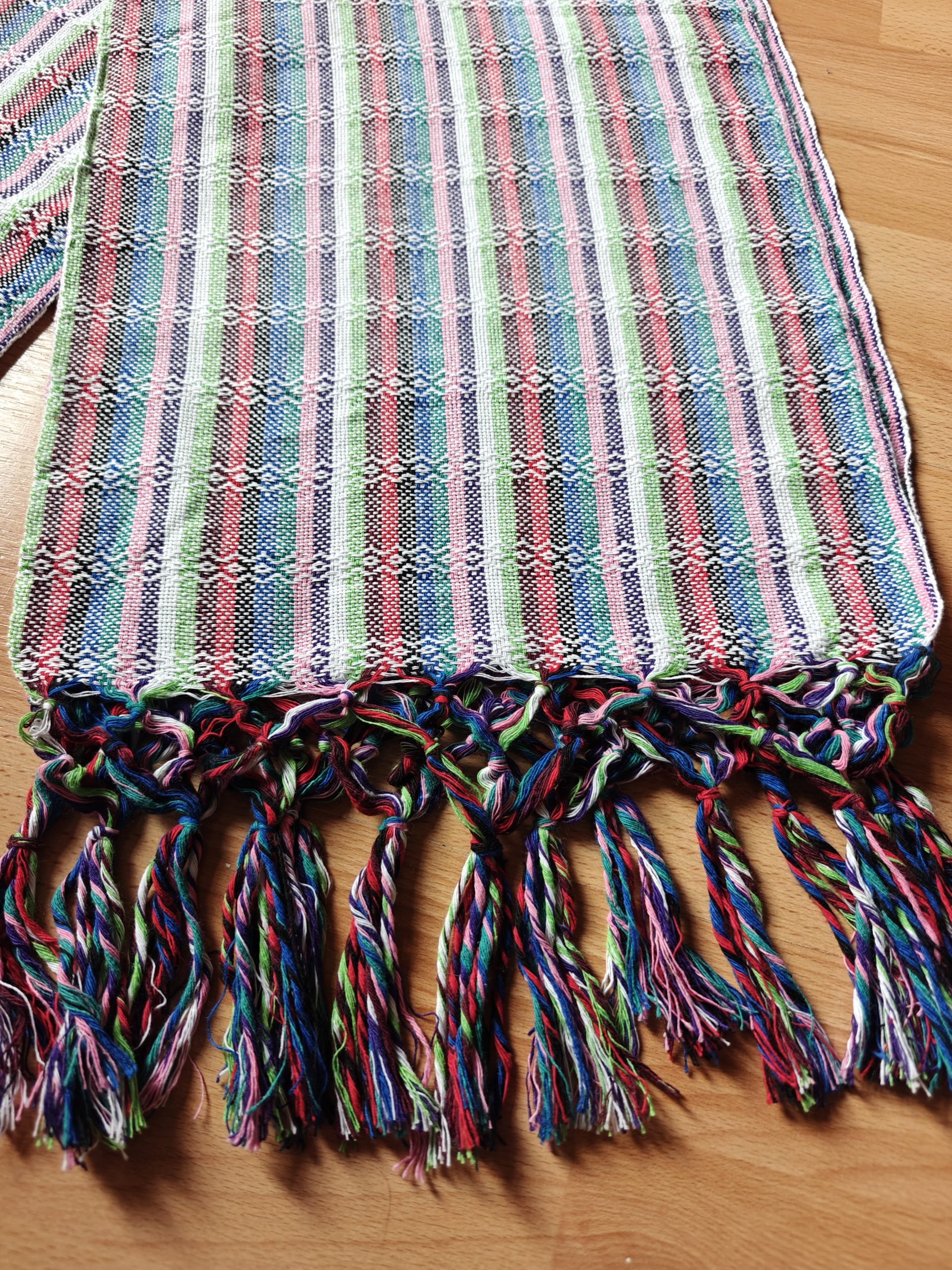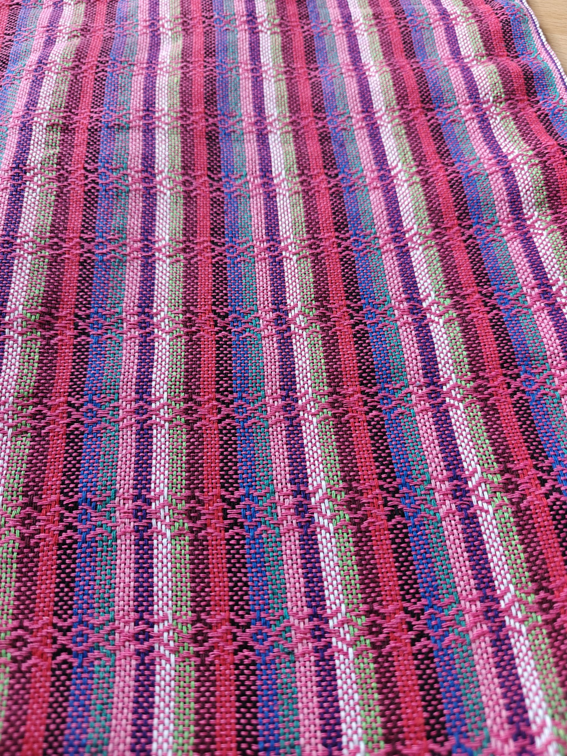 These particular rhomboid close weave rebozos are either 2.5m or 3m long (with a 15 cm fringe on either side), on a width of 65 cm. They are incredibly soft traditional Mexican rebozos that were handmade on a waist loom in San Andres Tzicuilan, a town in the north of Puebla, Mexico – the softest ones I stock.