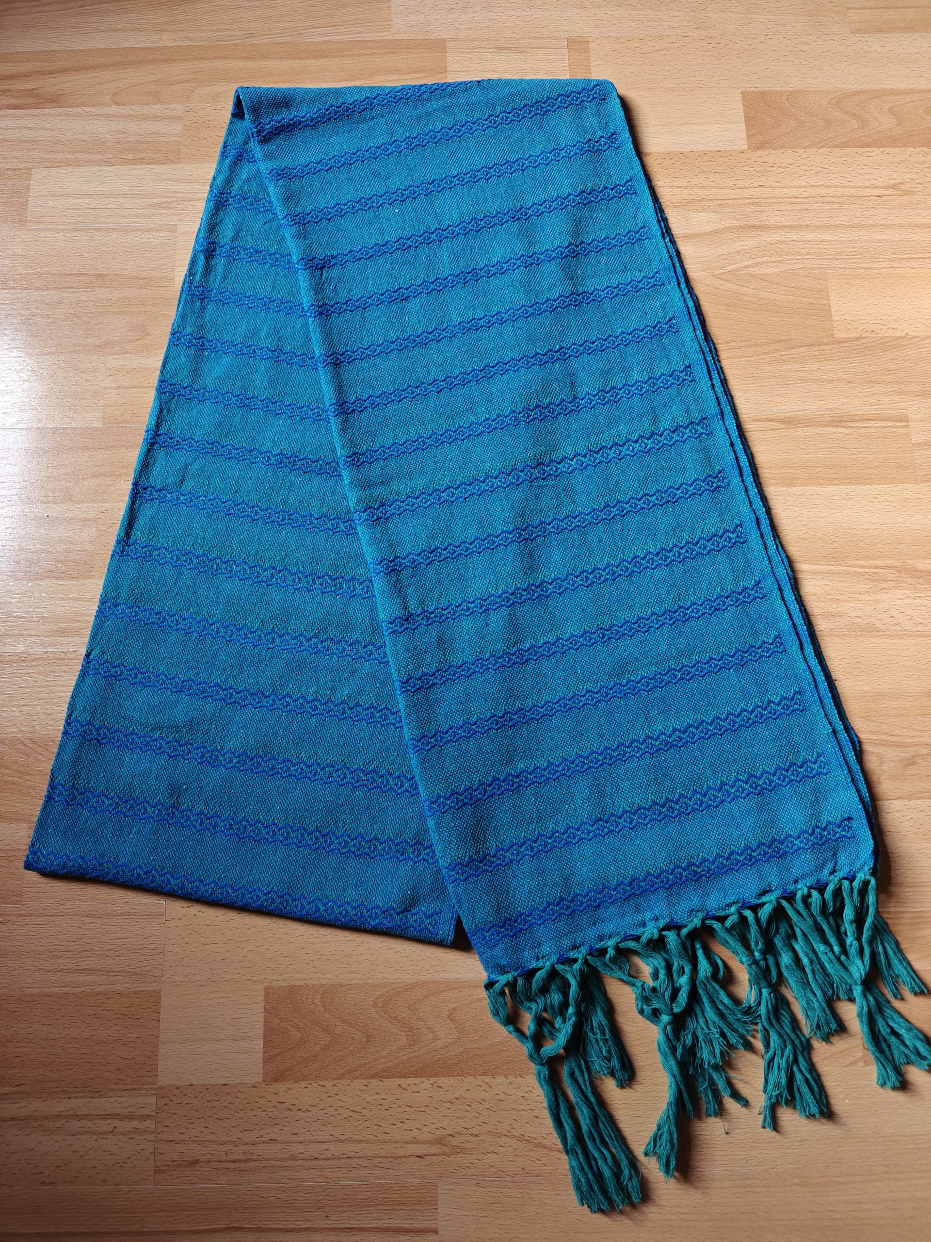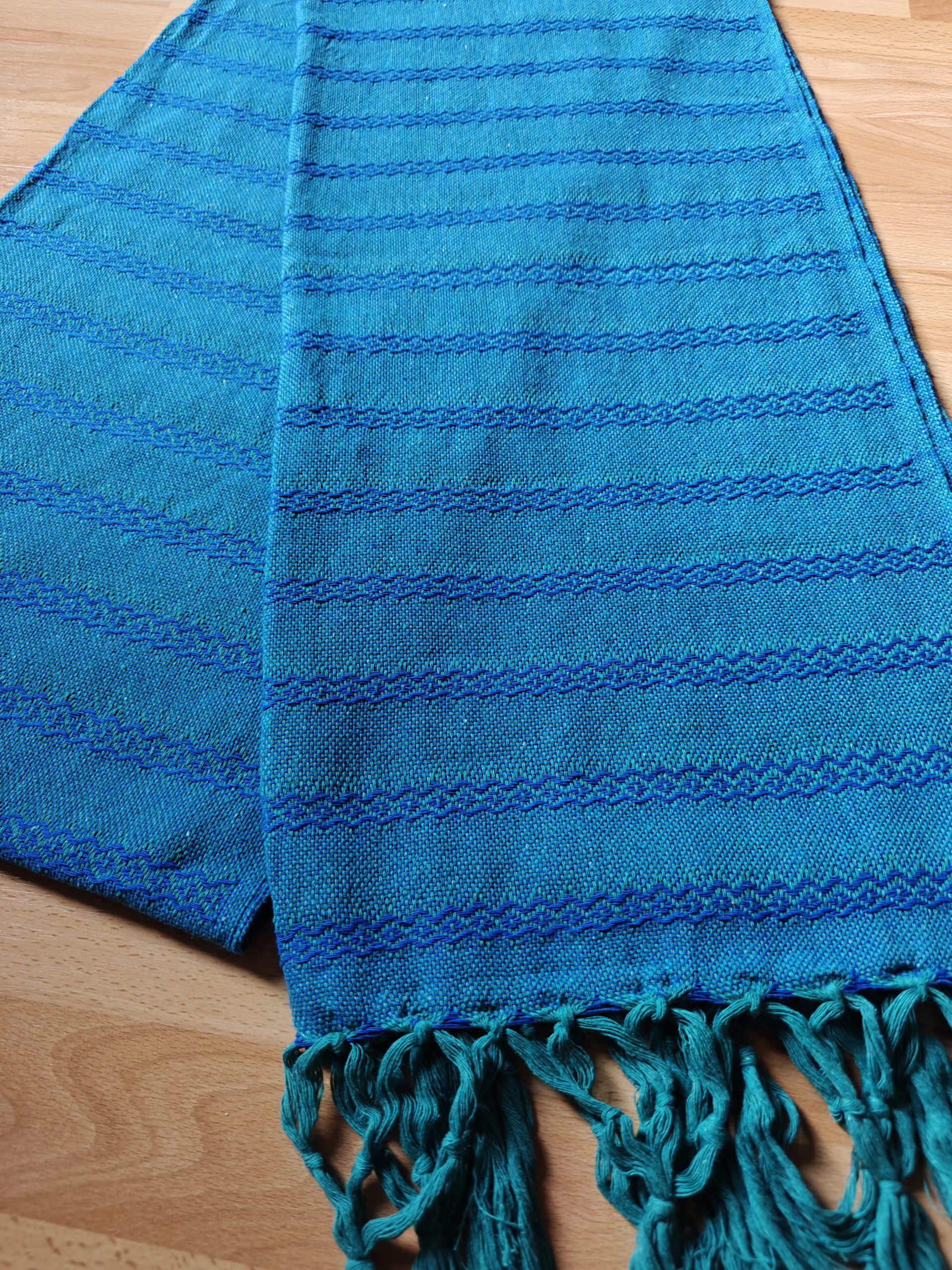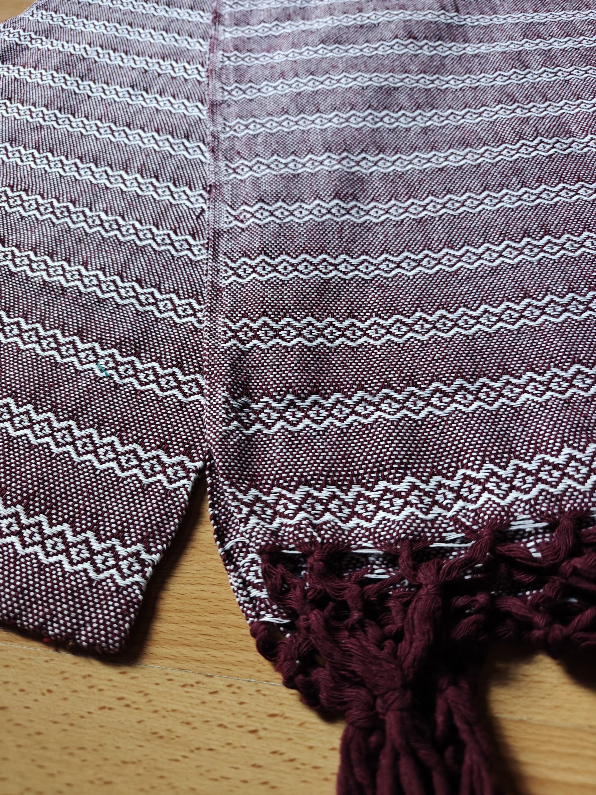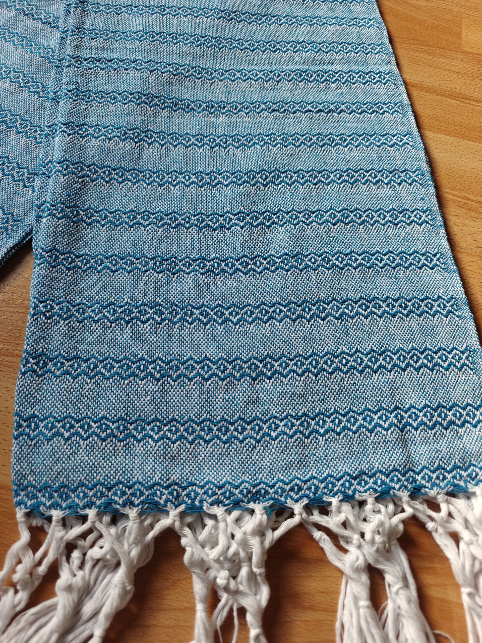 These particular rhomboid close weave rebozos are 3m long (with a 15 cm fringe on either side), on a width of 65 cm. They are incredibly soft traditional Mexican rebozos that were handmade on a waist loom in San Andres Tzicuilan, a town in the north of Puebla, Mexico – the softest ones I stock.