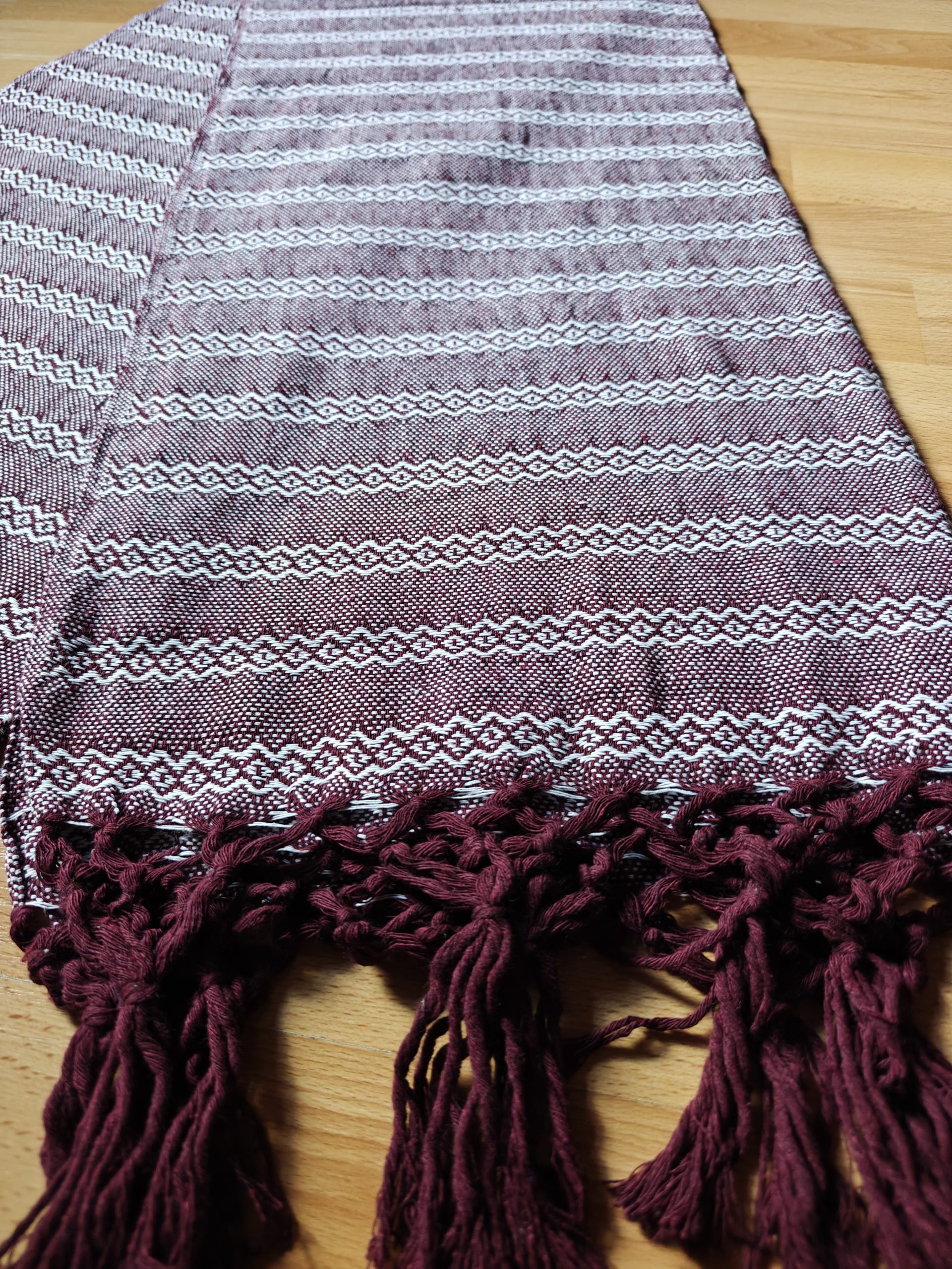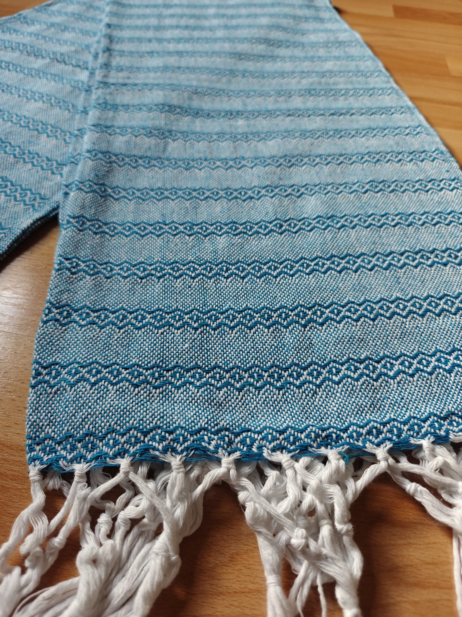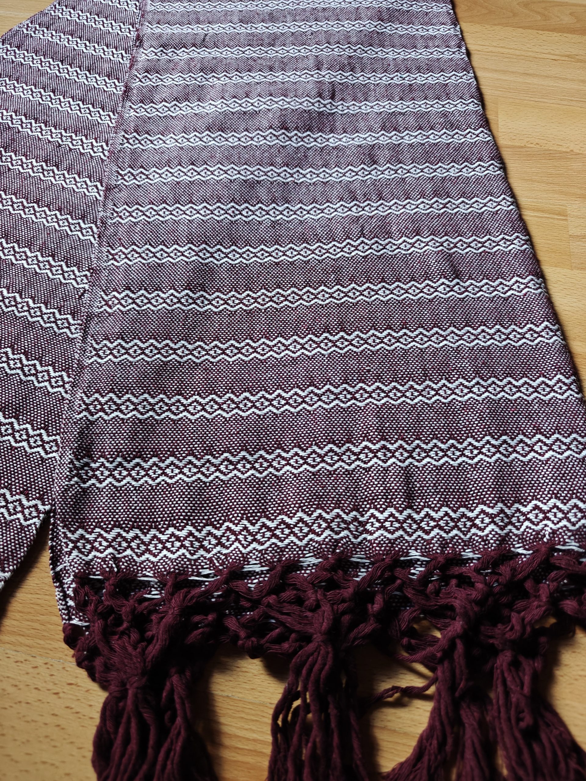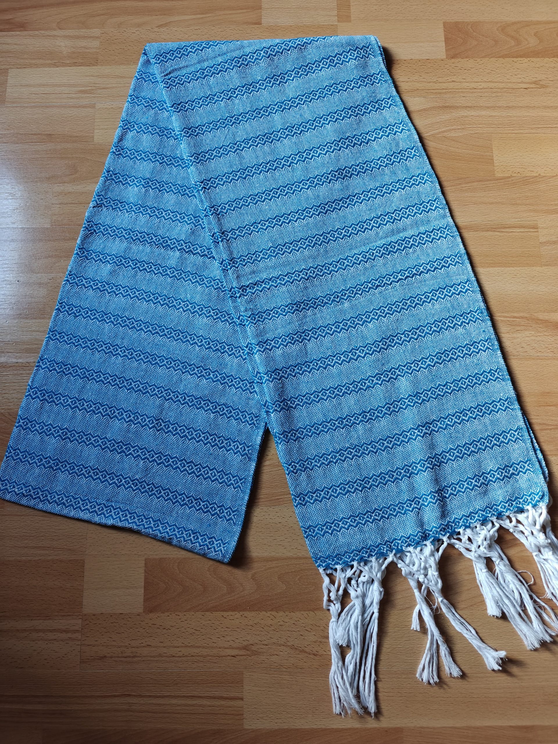 These particular rhomboid close weave rebozos are 3m long (with a 15 cm fringe on either side), on a width of 65 cm. They are incredibly soft traditional Mexican rebozos that were handmade on a waist loom in San Andres Tzicuilan, a town in the north of Puebla, Mexico – the softest ones I stock.