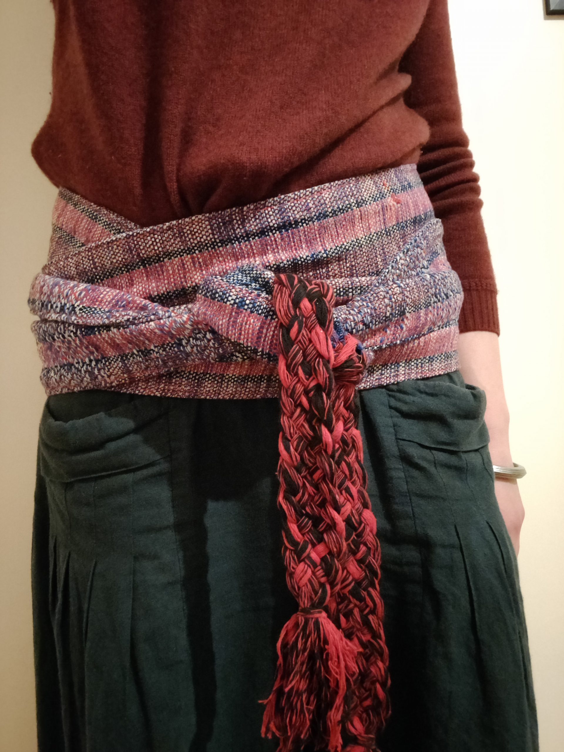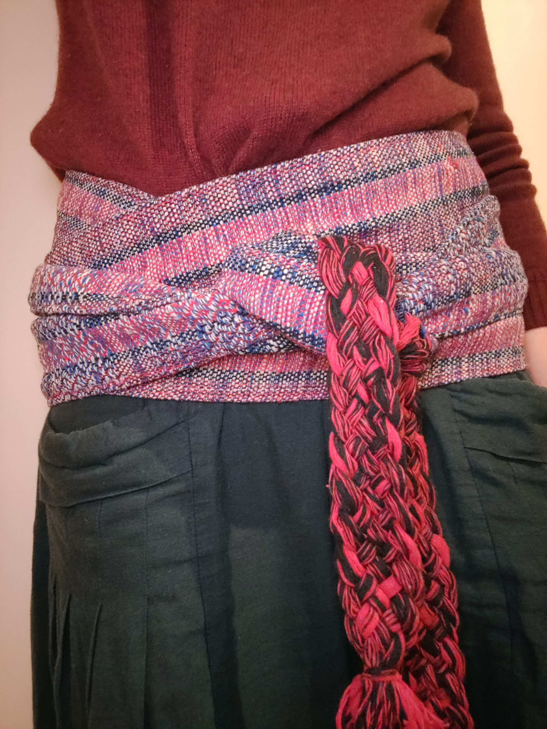 They are made to bring comfort, support and protection – traditionally they are used as a protection for the energy center (known to different cultures under the various names of dharan, dan tien, hara, navel point — much like a kamarkassa (cummerbund) in Indian traditions, or a martial arts belt in other Asian traditions) and are part of Latin American traditional attire.