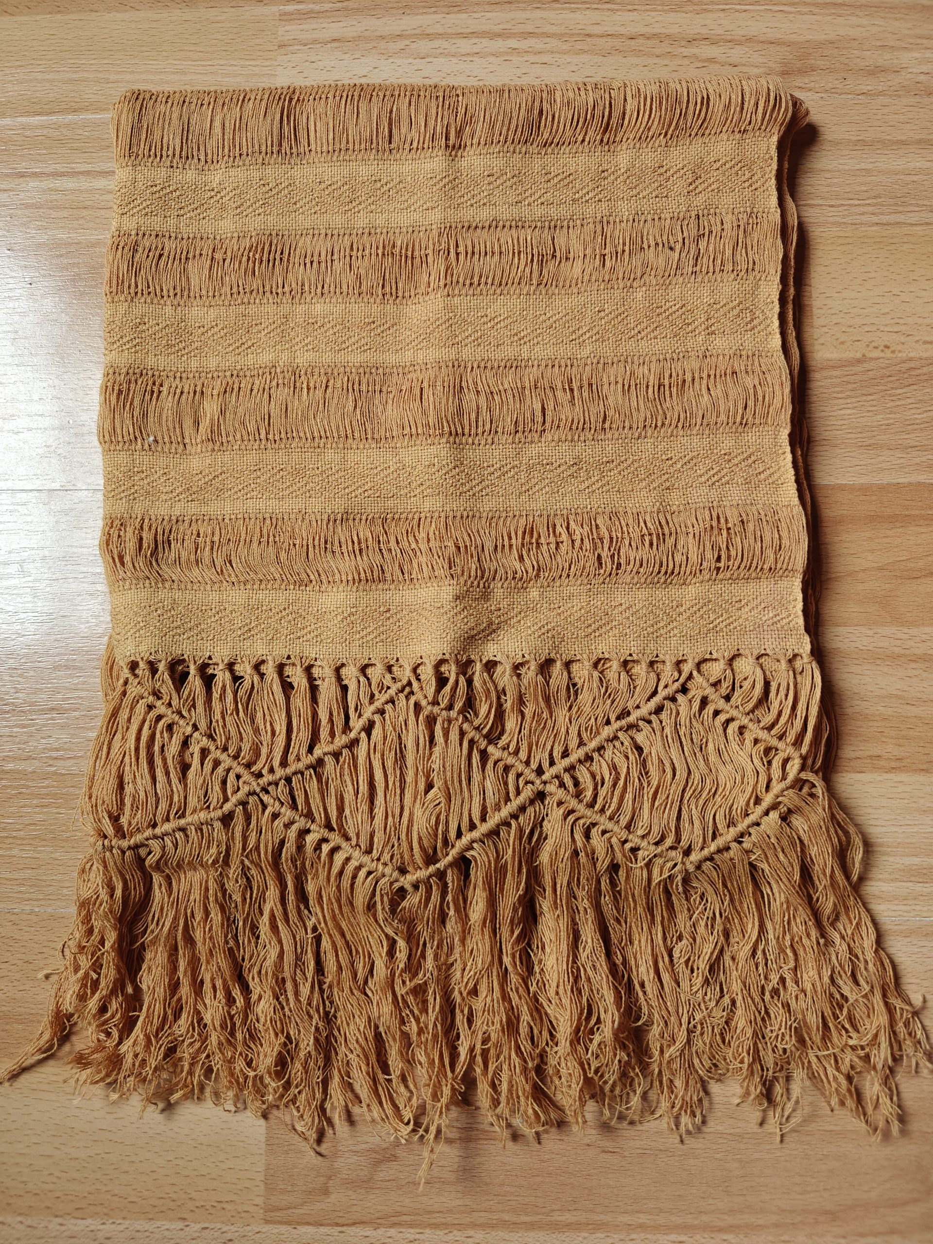 These normal size ones measure 60cm x 200cm (with an added 25cm of hand-knotted fringe on either side) and weigh 285 grams each. They come in different colours.